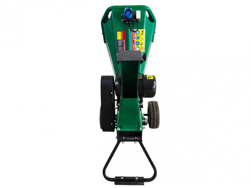 Для подрібнення використовується барабан з двома ножами із загартованої сталі та один контрніж. Така конструкція легко втягує гілки в бункер для подрібнення. Швидкість руху ножів 1800 об/хв забезпечує ефективне подрібнення деревини всіх порід. Передача обертання від двигуна на барабан здійснюється за допомогою клинових ременів, що захищає двигун від різких ударних навантажень. Довгий завантажувальний бункер з великою горловиною та автоматичне затягування матеріалу мінімізують ризик травмування та зворотного викиду гілки. Бункер для викиду подрібненого матеріалу може повертатися в різні боки, що дозволяє вивантажувати тріску у потрібне місце. Завдяки інтегрованому колісному шасі, ця електрична дробарка гілок може легко переміщуватися по робочій зоні.