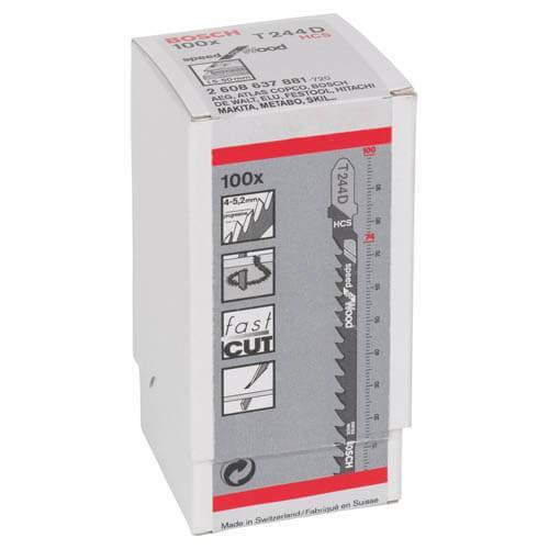 Тип Полотно HCS для лобзикових пилок; Загальна довжина 100 мм; Робоча довжина 71 мм; Якість пропила Чистий; М'яка деревина, ДСП, столярні плити, ДВП (5-50мм) криволінійний рез.; Виробник BOSCH