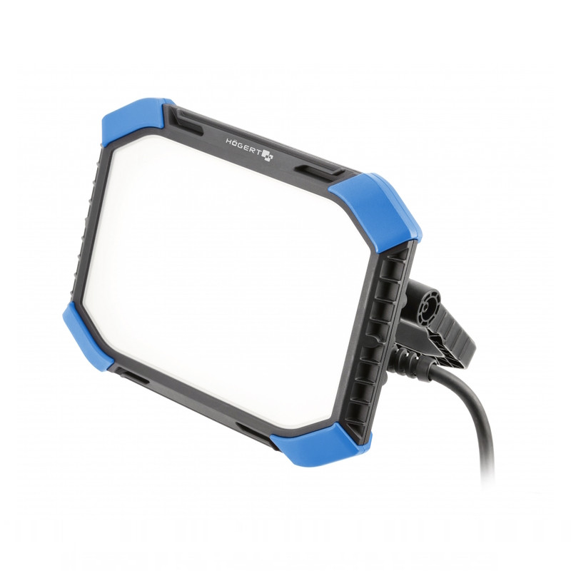 Портативний робочий прожектор, який відзначається високою якістю світла, міцністю та довговічністю.Підходить для роботи в найскладніших умовах — на будівництві, під час оздоблювальних і ремонтних робіт, у майстернях та на відкритому повітрі.Світлодіоди SMD високої якості випромінюють розсіяне світло, яке не засліплює та забезпечує широке освітлення. Термін служби діодів сягає 100 000 годин. Прожектор випромінює нейтральне біле світло, ідеальне для роботи.Корпус із високим ступенем захисту IP65 забезпечує повний захист від пилу й стабільну роботу навіть у дуже запилених приміщеннях.Окрім цього, корпус стійкий до впливу струменів води інтенсивністю 12,5 л/хв, спрямованих під будь-яким кутом, що дозволяє безпечно користуватися прожектором навіть під сильним дощем.Міцний матеріал корпусу з класом захисту IK09 (ударостійкість до 10 Дж) захищає прожектор від механічних пошкоджень у разі падіння.Може працювати в широкому діапазоні температур — від -20°C до +40°C, як у мороз, так і в спеку.Ручка з кутом нахилу 180° дозволяє направляти світло у потрібному напрямку.