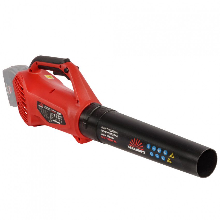 Завдяки продуманій конструкції турбіни повітродувка акумуляторна Vitals Master ALP 1850n BL створює потужний потік повітря зі швидкістю до 36 м/с, що відповідає понад 130 км/год.