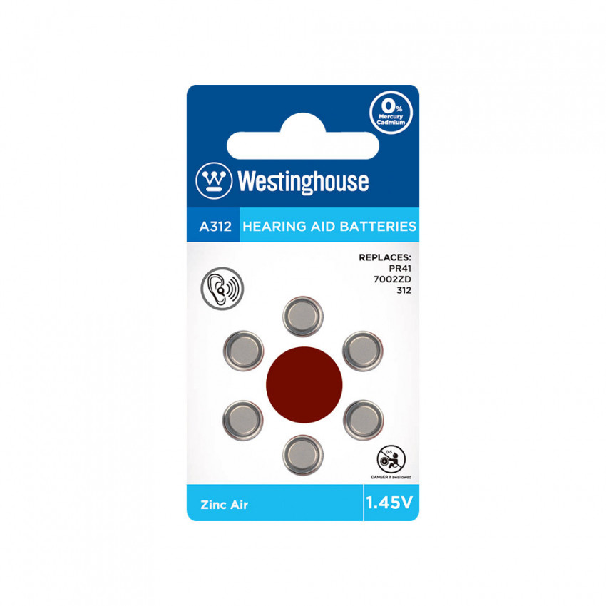 Про товар Повітряно-цинкова батарейка Westinghouse для слухових апаратів A312/PR41 1.45V 6шт/уп blister