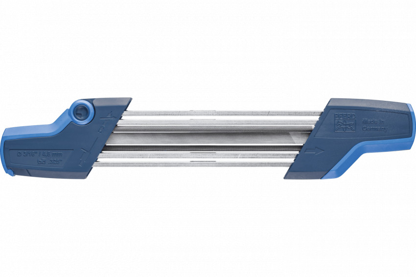 CHAIN SHARP CS-X представлений в трьох варіантах в залежності від кроку ланцюга. Це гарантує максимальну точність заточування та оптимальний результат. Пристрій можна налаштовувати на кут заточки до 30°. Необхідне значення обмежувача глибини можна подивитися в таблиці.