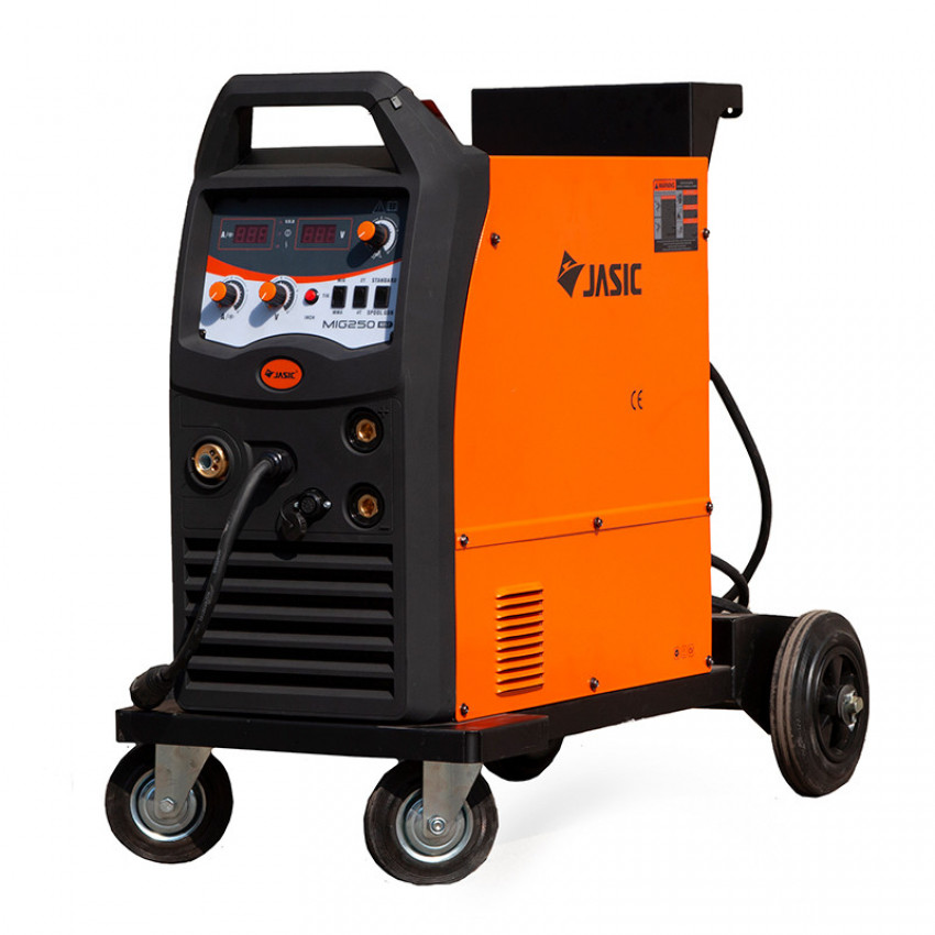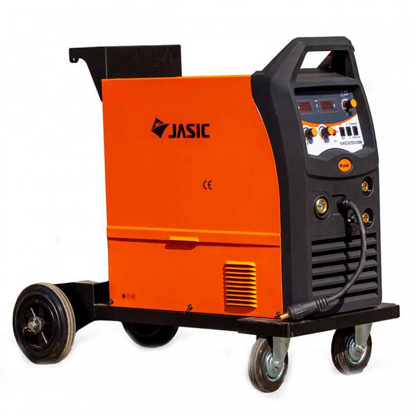 Jasic MIG-250 (N257) - це професійний зварювальний інвертор, який може використовуватися для напівавтоматичного зварювання в середовищі захисних газів (MIG/MAG), аргонодугового зварювання (TIG), а також для ручного дугового зварювання (MMA). Апарат працює як дротом суцільного перерізу, так і порошковим (потрібна заміна роликів механізму подавання дроту).