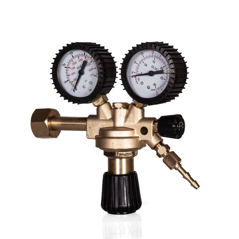 Конструкцією регулятора передбачено два манометра: лівий відповідає за тиск газу на вході, правий - за витрату газу. Для зручності використання шкали для різних газів виділені контрастними кольорами - синій для вуглекислого газу і червоний для аргону.