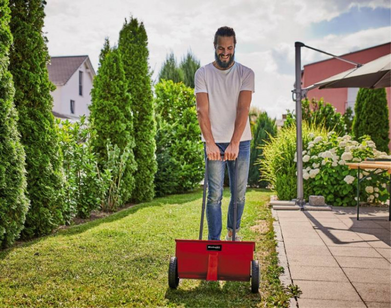 Розкидувач насіння і добрив Einhell GC-SR 12 - це надійний і практичний інструмент, з яким ви можете рівномірно, швидко і без зусиль розподіляти по землі добрива, засіювати ділянки насінням чи розкидувати пісок чи сіль у зимовий період. Завдяки подвійній ручці ви можете легко і безпечно керувати розкидувачем. Корпус сіялки GC-SR 12 зроблений з високоякісного ударостійкого пластику, ємність баку дорівнює 12 літрам, діаметр колес 200 мм, а ширина розкидування 45 см. Для зміни дозування речовин, які розкидаються, передбачений регулюючий важіль.