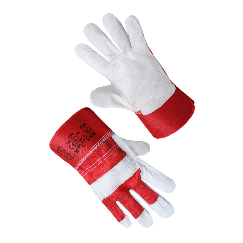 Матеріал: - основа: спілок, бавовна; Особливості: - колір основи: сірий з червоним; - розмір: 10; - вага пари: 174 г. Кількість в упаковці 12 пар Вага упаковки 2,088 кг .; Групова упаковка - картонний ящик; Кількість пар у груповій упаковці - 120 пар;