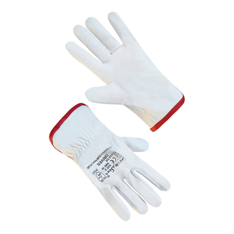 Матеріал: - основа: біла шкіра; Особливості: - зап'ястя фіксується еластичною гумкою; - розмір: 10; - вага пари: 125 г. Кількість в упаковці 12 пар Вага упаковки 1,5 кг Групова упаковка - картонний ящик; Кількість пар у груповій упаковці - 120 пар;