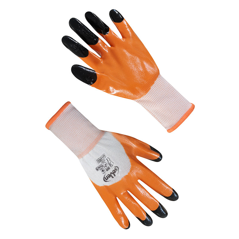 Особливості: Колір основи: білий; Покриття: помаранчевий з чорним, 3/4; Розмір: 10 Вага парі: 55 г Кількість в упаковці 12 пар Вага упаковки 0,744 кг Групова упаковка - картонний ящик Кількість пар у груповій упаковці - 240 пар.
