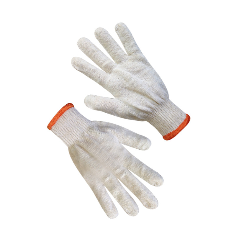 Матеріал: - основа: поліестр 30%, бавовна 70% ; - покриття: без; Особливості: - Колір основи: білий; - кількість ниток - 7; - клас в'язки - 7; - розмір: 10; - вага пари: 77 г. Кількість в упаковці 10 пар Вага упаковки 0,770 кг. Группова упаковка - поліпропіленовий мішок Кількість пар в групповій упаковці - 200 пар.