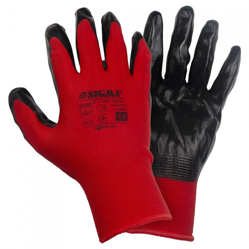 Рукавички трикотажні з частковим нітриловим покриттям р10 (червоно-чорні манжет) КРАТНО 12 парам SIGMA (9443471)
