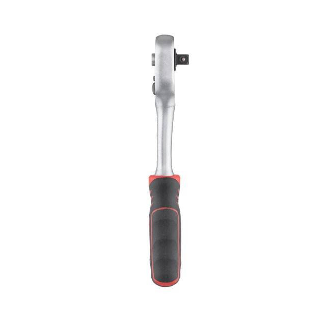 Двокомпонентна ручка з гумовими вставками гарантує надійне зчеплення навіть із брудними або забрудненими в маслі руками. Міцна, зручна тріскачка комфортно лежить у долоні під час роботи.