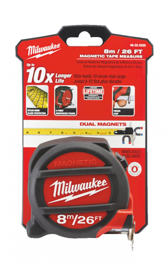 Характеристики Рулетка магнітна MILWAUKEE, 8м/26фт, (27мм)
