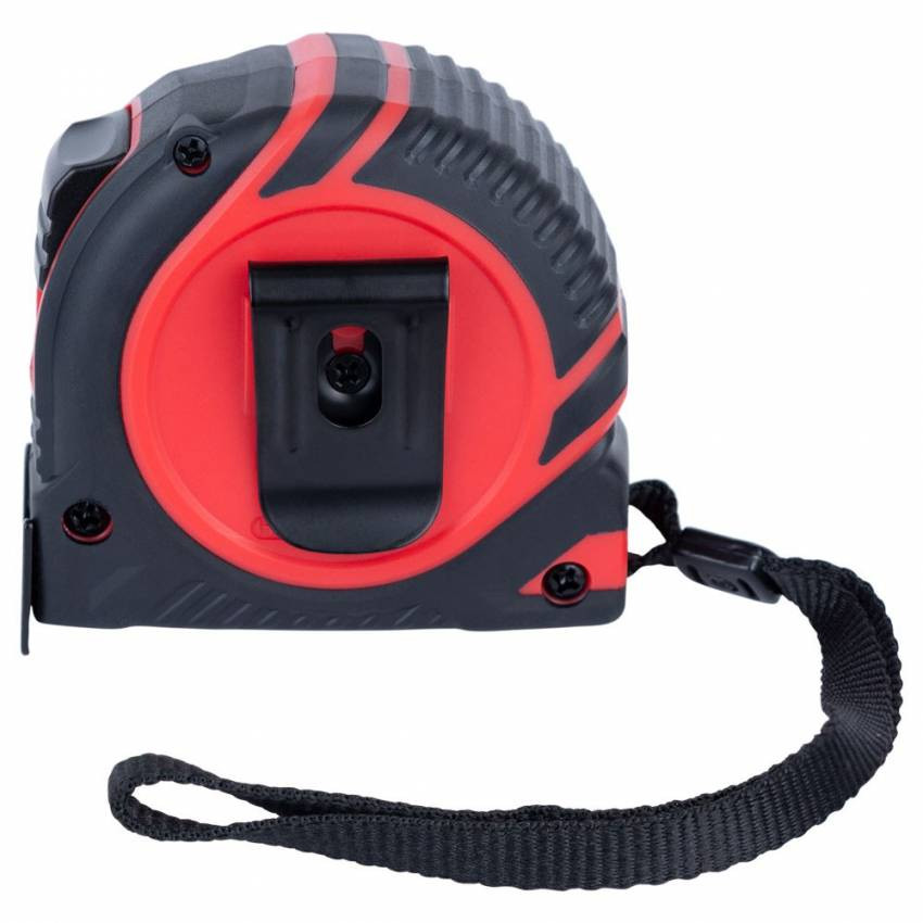 Рулетка гумова з нейлоновим покриттям полотна 5м×19мм Ultra (3825122) Двосторонній рухомий зачіп, посилений трьома заклепками, дозволяє робити вимірювання і чіпляючи, і притуляючи полотно; Двостороння метрична шкала; Двоколірне тло полотна - жовтий колір з лицьової частини, білий - з тильного боку рулетки; Двостороннє нейлонове покриття полотна захищає від негативного впливу зовнішніх факторів; Клас точності ІІ.
