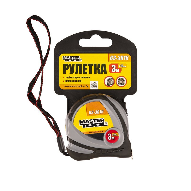 Про товар MasterTool Рулетка 3 м*16 мм з фіксатором полотна, Арт.: 63-3016