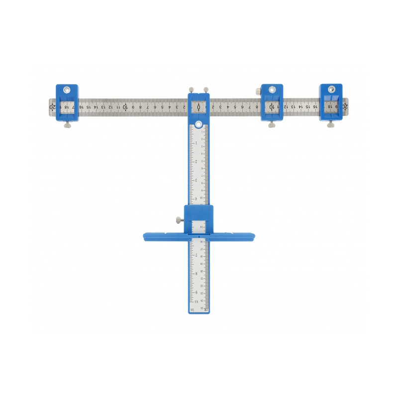 Обмежувач, розташований на лівому затиску, при встановленні в перпендикулярному положенні інструмент стабілізує в горизонтальному або вертикальному положенні. Всі три затискачі оснащені затискним гвинтом, тому заданий розмір можна використовувати повторно для наступного виробу, що розмічується.