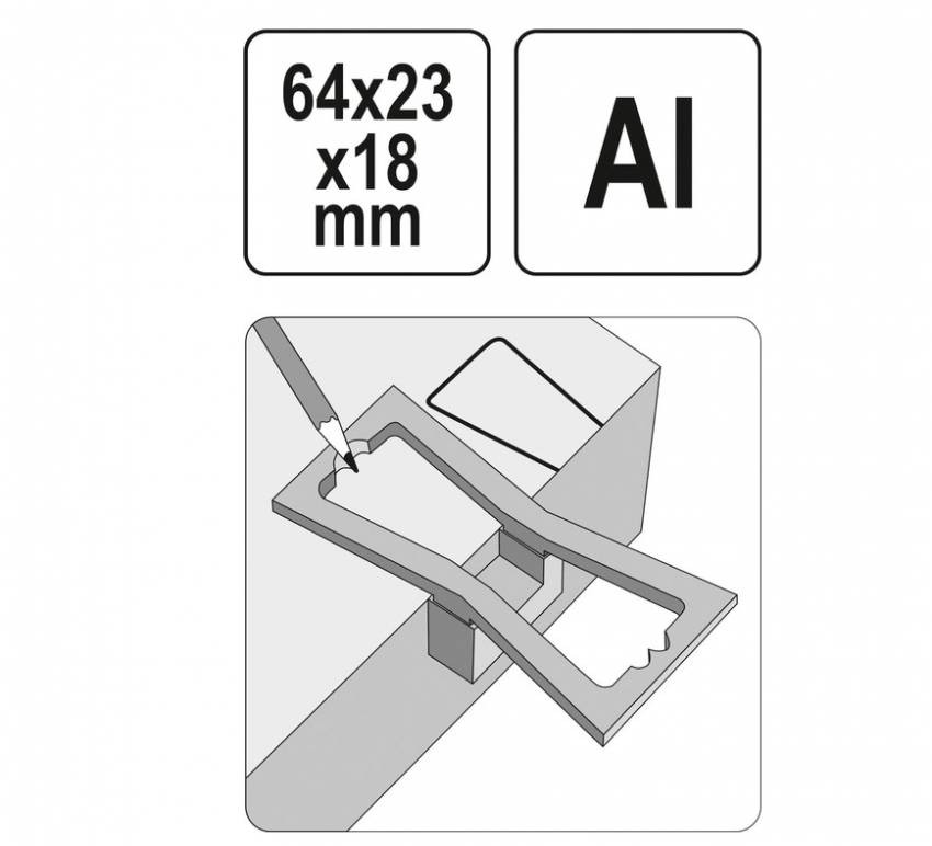 Шаблон розмічальний YATO контур "ластівковий хвіст" зі шкалою, 64х 23х 18 мм