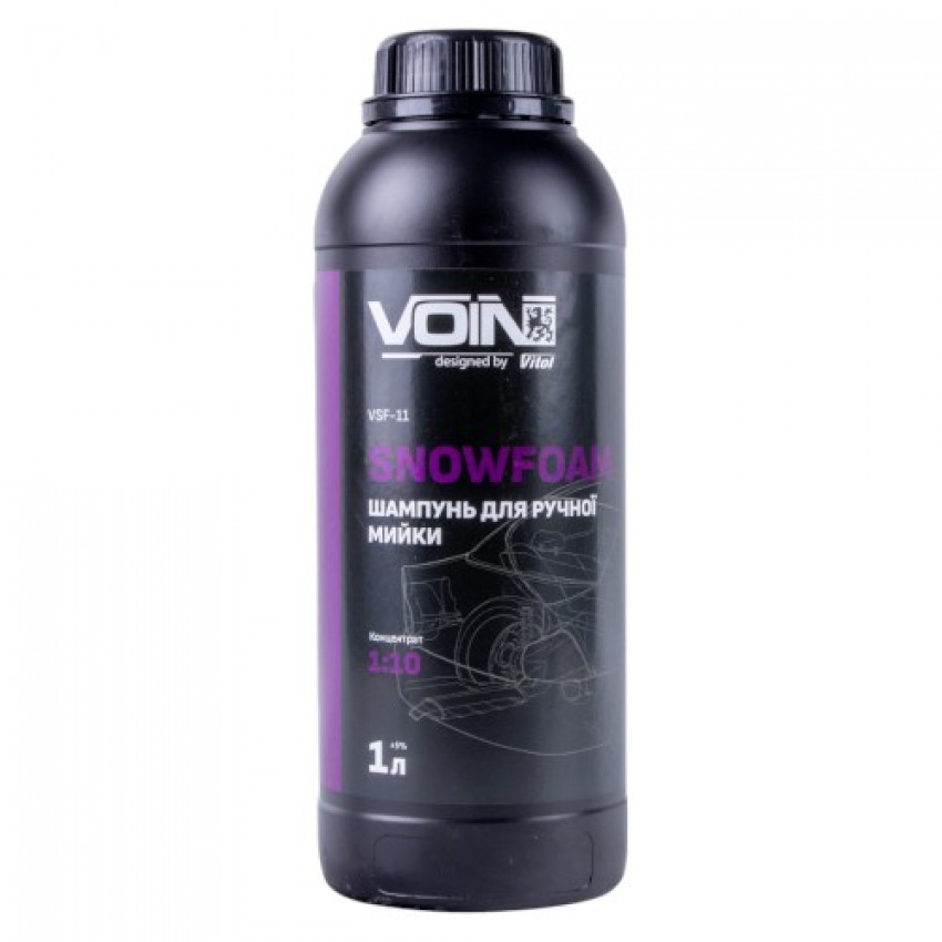 VOIN SnowFoam — це нейтральний шампунь ідеально підійде для другої фази мийки авто (видалення статичних забруднень). Має густу та насичену піну з приємним ароматом. Ефективно видаляє бруд з лакофарбових поверхонь та скла. Завдяки унікальному складу працює навіть в жорсткій воді. Не містить шкідливих для здоров’я складових. Повністю змивається звичайною водою, не залишає розводів, помутнінь, відблисків, залишає прозору, чисту поверхню. Не містить агресивних складових. Безпечний для лакофарбових покриттів, пластику, гуми. Економний у використанні, має приємний запах.При концентрації 1:5, може використовуватись лубрикантом для глибокої очистки лакофарбового покриття авто за допомогою автоскрабу, глини.