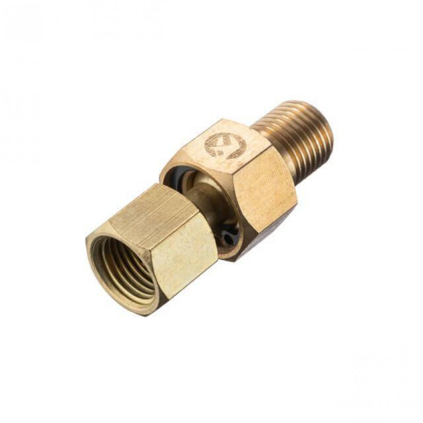 Шарнір поворотний призначений для монтажу різних пневматичних магістралей. Особливо зручний для приєднання шлангів високого тиску до пневмоінструментів: шланг не перевантажує руку оператора і не заважає у роботі.