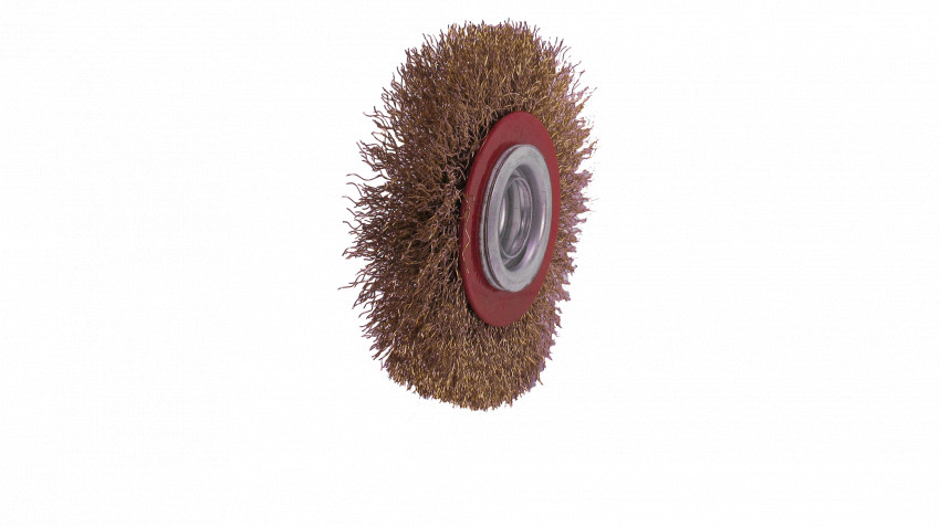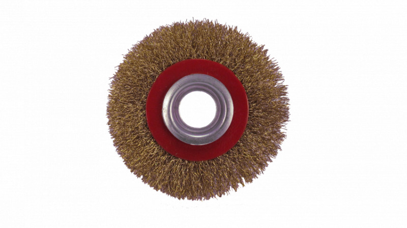 Дискова щітка для кутових шліфувальних машин з гофрованим латунним дротом, яки використовують для знаття загрубілостей, видалення задирок, зняття лаку, окиснень, полірування, очищення особливо у важкодоступних місцях. Дріт покритий латунню, підвищує ступінь захисту від корозії.