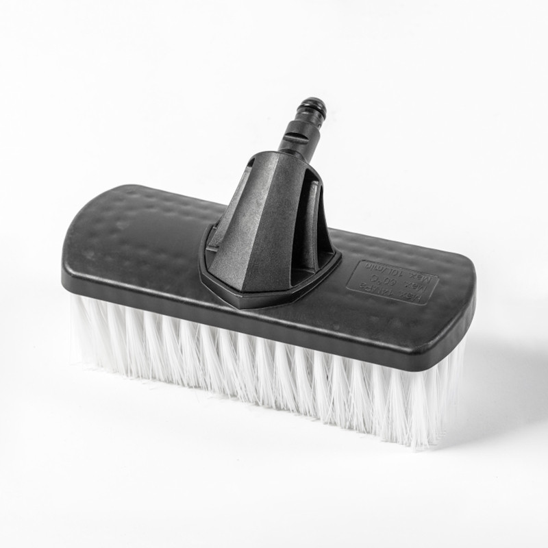 Щітка високого тиску забезпечує точне та ретельне очищення важкодоступних місць, таких як кути та сходи. Насадка постійно подає воду під тиском, що полегшує миття забруднених поверхонь. М’яка щетина не пошкоджує поверхню, що очищується. Підходить для очищення рівних поверхонь, таких як: тераси, фасади.