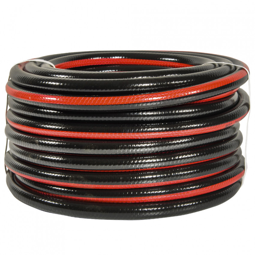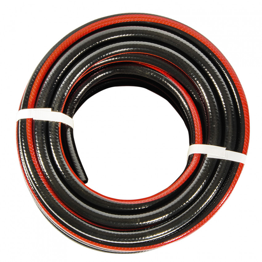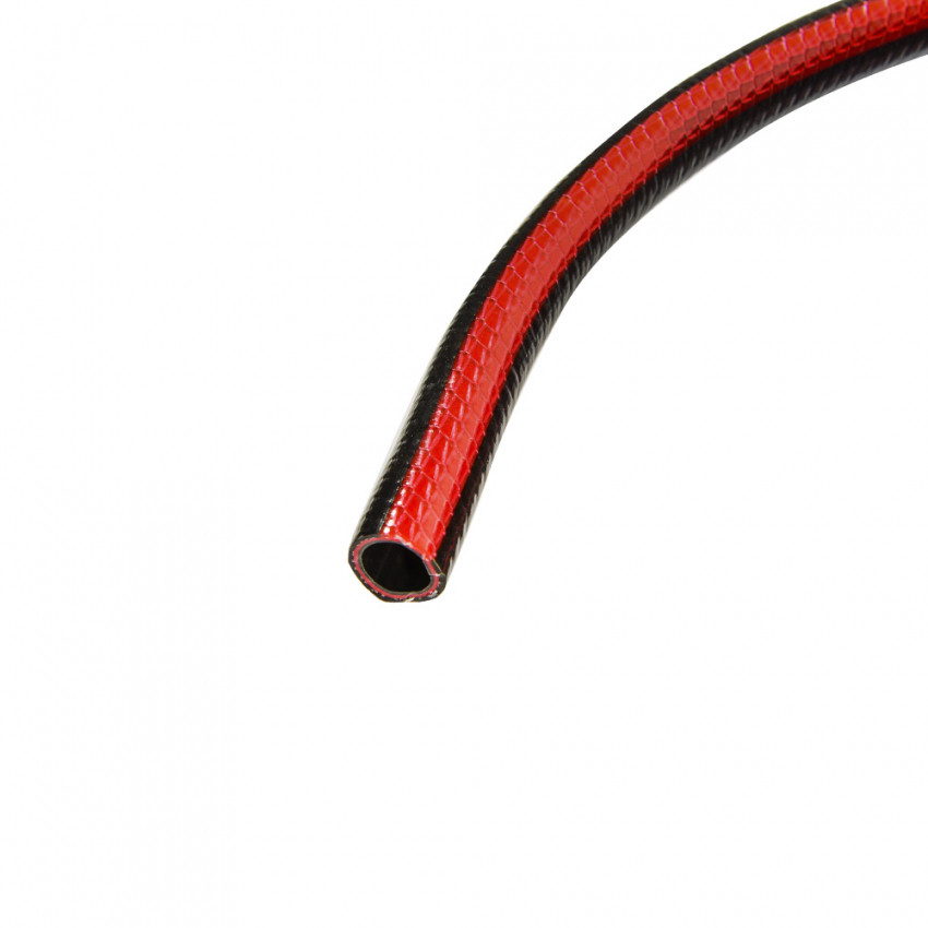 Шланг садовий для поливу Vitals Master "Quattro" - це високоякісний та зручний шланг для поливу саду, городу, газону чи клумб. Шланг має діаметр ½" і довжину 20 м, що дозволяє охопити велику площу поливу. Шланг виготовлений з полівінілхлориду (ПВХ), який має високу міцність, еластичність і стійкість до впливу води, ультрафіолетового випромінювання та наростання водоростей. Шланг має чотири шари. Прозорий зовнішній шар виконує роль захисту шлангу від механічних пошкоджень та стирання. Сітчасте обплетення з міцної синтетичної нитки, що становить проміжний шар, робить шланг стійким до розтягування та розривів. Третій шар додатково збільшує загальну товщину шланга та його здатність зберігати форму під час експлуатації та зберігання. Внутрішній шар із гладкою стінкою не створює перешкод потоку рідини усередині шланга. Шланг має робочий тиск 20 бар та тиск на розрив 25 бар, що гарантує безпеку та довговічність роботи. Шланг має робочу температуру від – 5 °С до + 45 °С, що дозволяє використовувати його в різних кліматичних умовах.