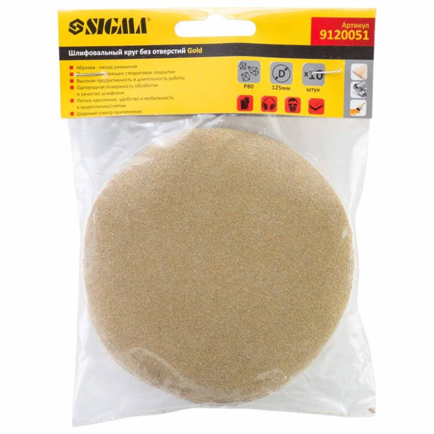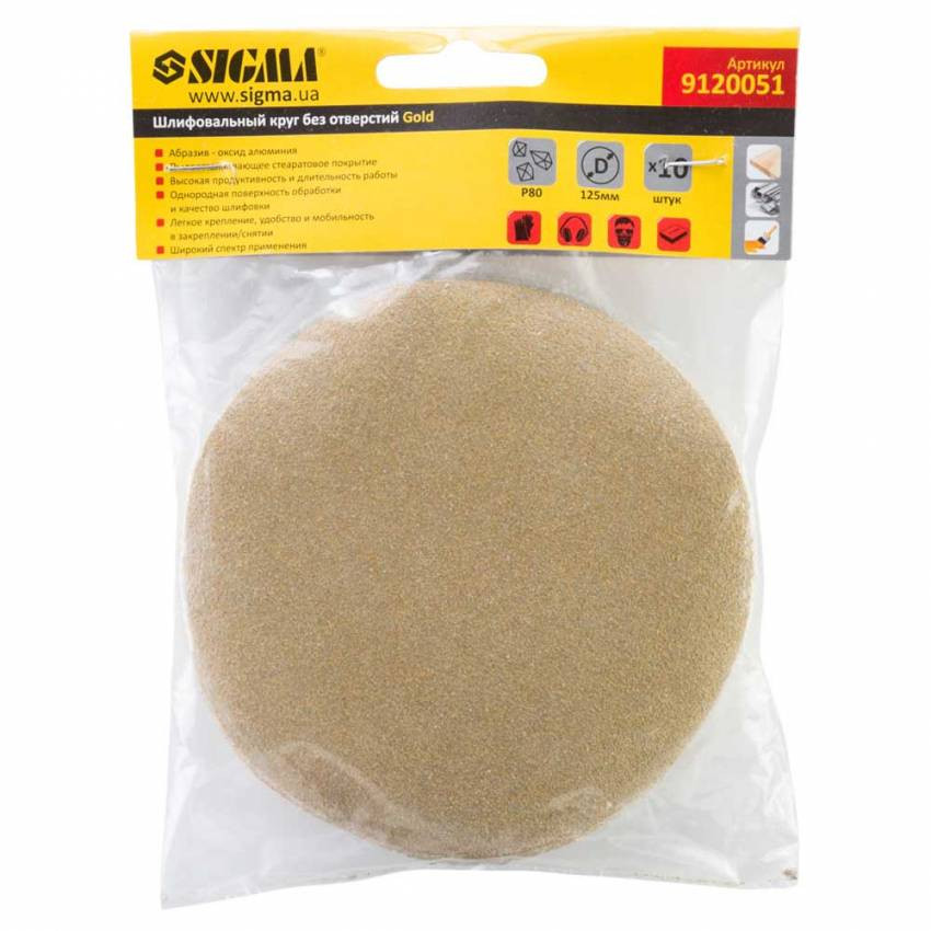 Характеристики Шліфувальне коло без отворів Ø125мм Gold P80 (10шт) Sigma (9120051)