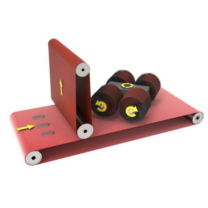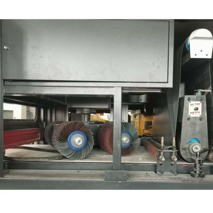 Верстат підходить для шліфування широких заготовокметалу (до 1300мм) після лазерного різання, або пробивки листового металу. Він може ефективно виконувати видалення задирок, зробити закруглення країв, зробити обробку поверхні. У верстаті використовуються абразивні кругові щітки. Операційні дії чергуються обертанням, щоб реалізувати закруглений край, зняття задирок, поперечне оздоблення поверхні і т.д.