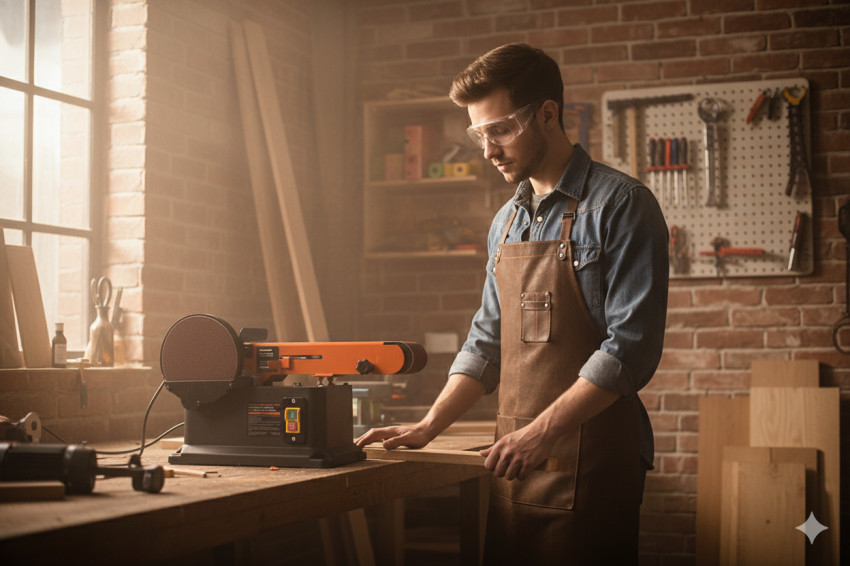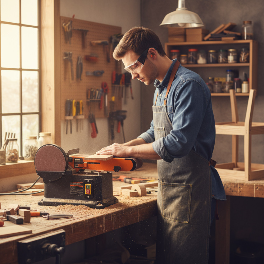 Можливість нахилу робочого столу спільно з використанням шліфувальних дисків розширює сферу застосування верстата.