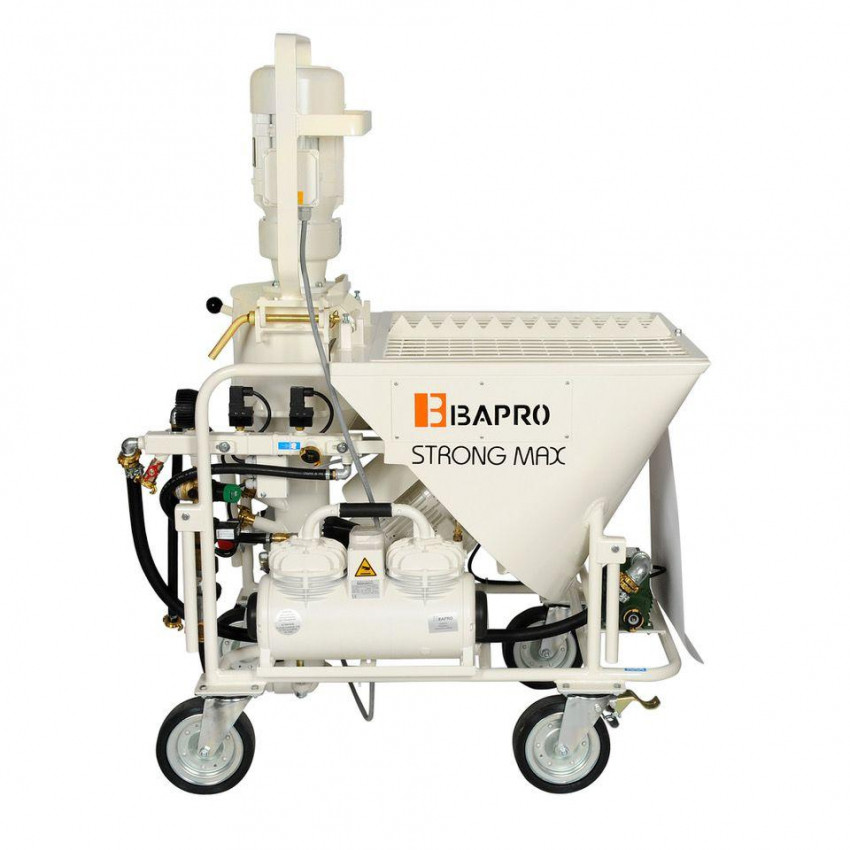 Штукатурна станція BAPRO one STRONG MAX - це професійне обладнання для виконання штукатурних робіт на великих комерційних і промислових об’єктах, яке дозволяє працювати із широким спектром сумішей (гіпсова та цементно-вапняна штукатурки, декоративна штукатурка, клейові маси, самовирівнювальні суміші, рідкі стяжки, кладочні розчини тощо). Регулювання швидкості подачі у діапазоні 8-80 л/хв за допомогою інвертора дає змогу виконувати як делікатні штукатурні роботи, так і швидке заливання стяжок.