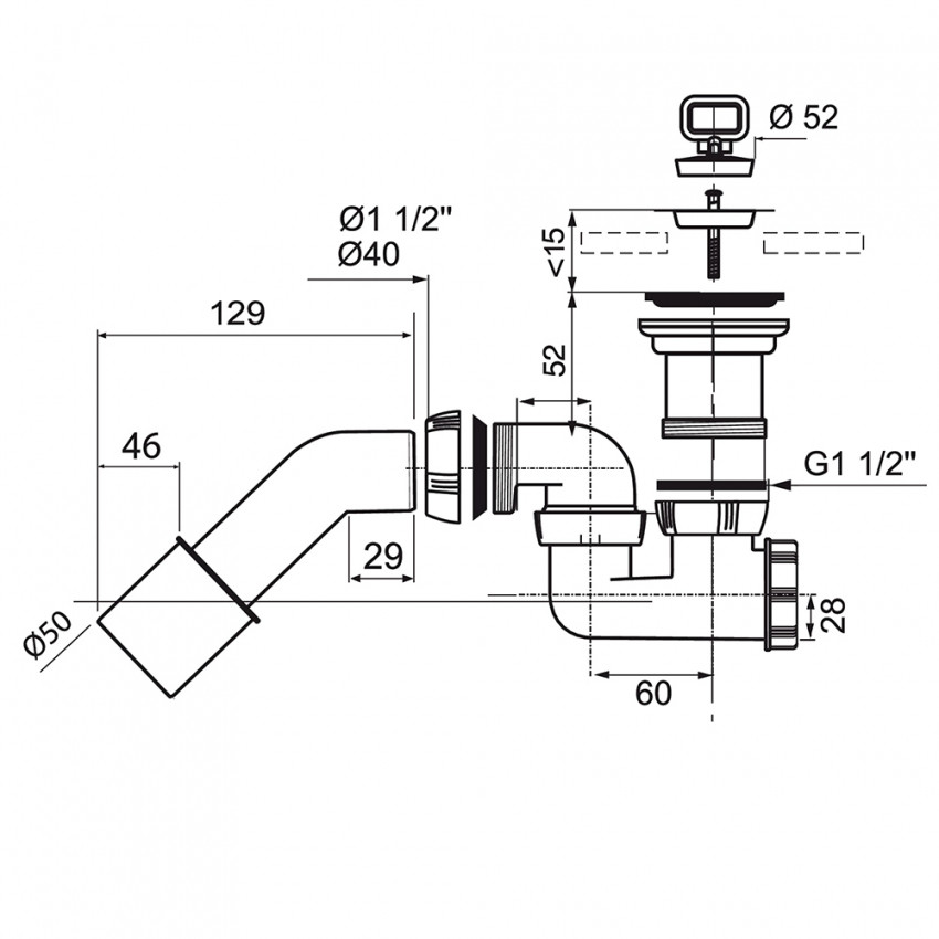 Сифон для душового піддону Ø50мм з адаптером Ø40/50мм WIRQUIN (9544920)