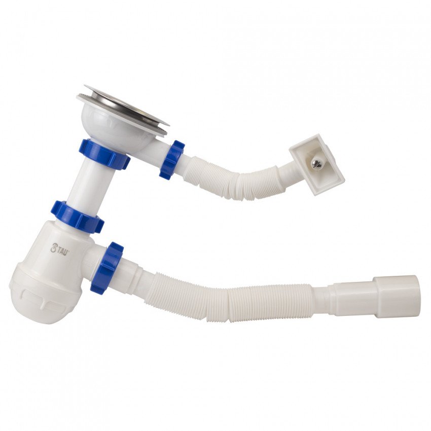 Сифон для кухонної мийки з нержавіючим випуском 3½" квадратним переливом і гнучким відведенням Ø40/50мм TAU (9842531)