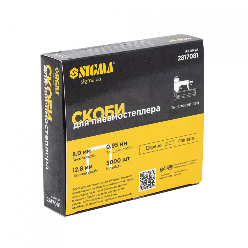 Про товар Скоби 8*12.8мм для пневмостеплера 5000шт Sigma (2817081)
