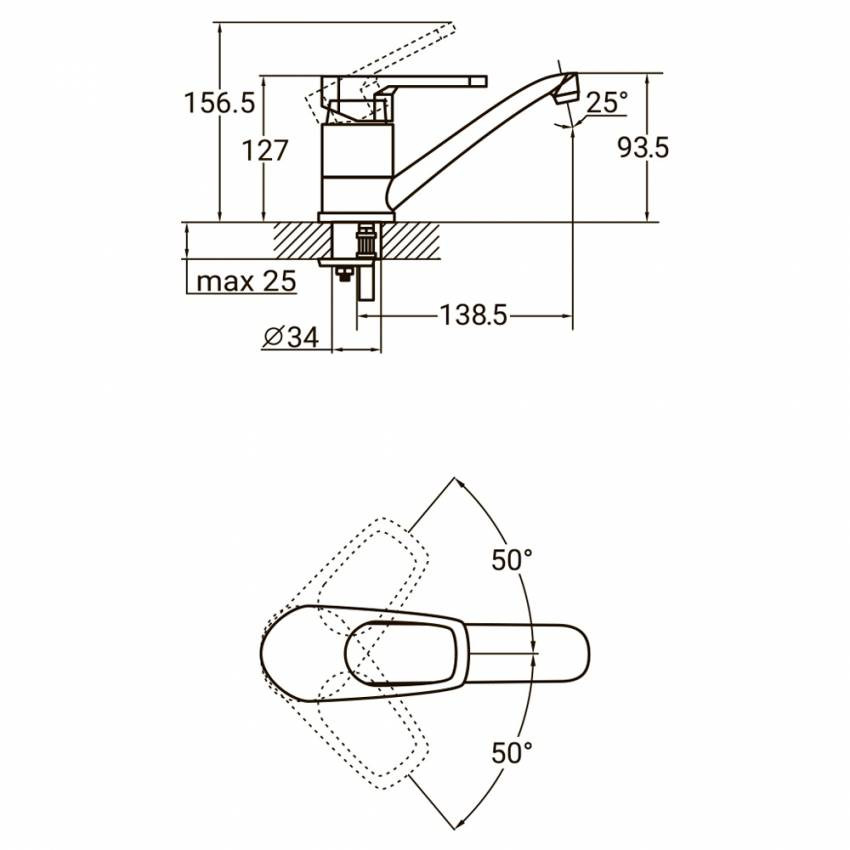 Про товар Змішувач MJ Ø40 для кухні гусак прямий 150мм на шпильці AQUATICA (MJ-2B129C)