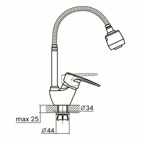 Змішувач ML Ø40 для кухні гусак гофрований на гайці AQUATICA (ML-4B644C) Мінімальний тиск у системі водопостачання: 0.5 бар Максимальний тиск у системі водопостачання: 10 бар Водневий показник води (pH): 6.5-8.5 Загальна мінералізація води: м³ Тільки для чистої води без домішок, що містять абразиви (пісок, глину, вапно тощо) Змішувач для кухні ML-4B644C має гнучкий регульований вилив, який дозволяє змінювати кут нахилу, напрямок та висоту для зручного миття посуду будь-яких розмірів та кількості. . Такий елемент сантехніки підкорить серце кожної домогосподарки своїм функціоналом та дизайном! Загальні характеристики: хромонікелеве покриття корпусу із захистом від корозії та механічних пошкоджень; одноручне керування температурою та силою потоку води; потужна аерація та стабілізація струменя; якісні комплектуючі; монтаж урізним способом за допомогою гайки. Для підключення до системи водопостачання змішувач для кухні укомплектований двома гнучкими підводами. Гарантія на виріб – 36 місяців.