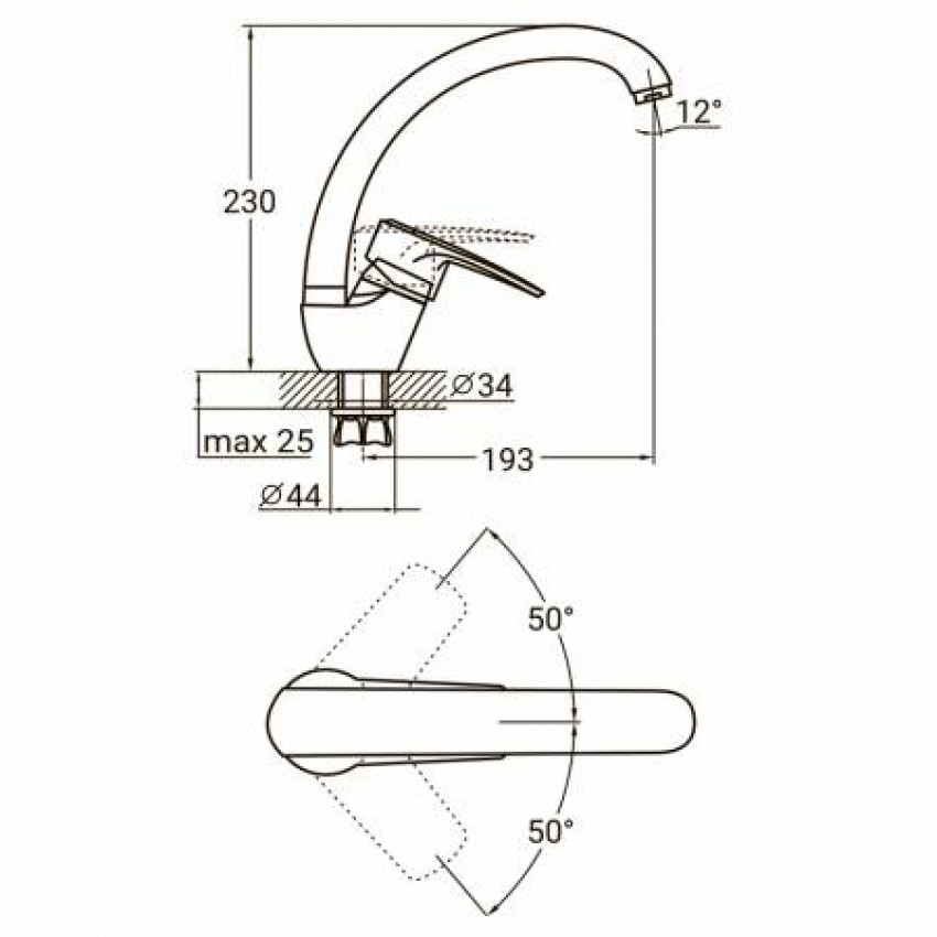 Змішувач ML Ø40 для кухні гусей вухо на гайці AQUATICA (ML-4B141C) Мінімальний тиск у системі водопостачання: 0.5 бар Максимальний тиск у системі водопостачання: 10 бар Водневий показник води (pH): 6.5-8.5 Загальна мінералізація води: не більше 15 м³ Тільки для чистої води без домішок, що містять абразиви (пісок, глину, вапно тощо) Змішувач для кухні ML-4B141C має один важіль для регулювання потоку та температури води J-подібний, поворотний вилив. Незамінний для миття великої кількості посуду, у тому числі каструль, сковорідок, графинів. Корпус має хромонікелеве покриття, стійке до корозії. Щоб змішувач для кухні Акватика служив багато років і не тьмянів, його достатньо протирати м'якою губкою або ганчірочкою з мікрофібри, а також періодично очищати аератор. Вид монтажу – врізний, з установкою у спеціальний отвір у мийці. Тип кріплення – гайка (корона). Для підключення до магістралі в комплекті з кухонним краном додаються 2 гнучкі підводи. Переваги: - зручне використання; зносостійкі комплектуючі; Швидкий монтаж. Гарантія виробника надається на 36 місяців.