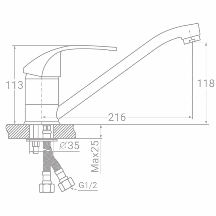 Характеристики Змішувач SM Ø40 для кухні гусак прямий 250мм на шпильці TAU (SM-2B244C)