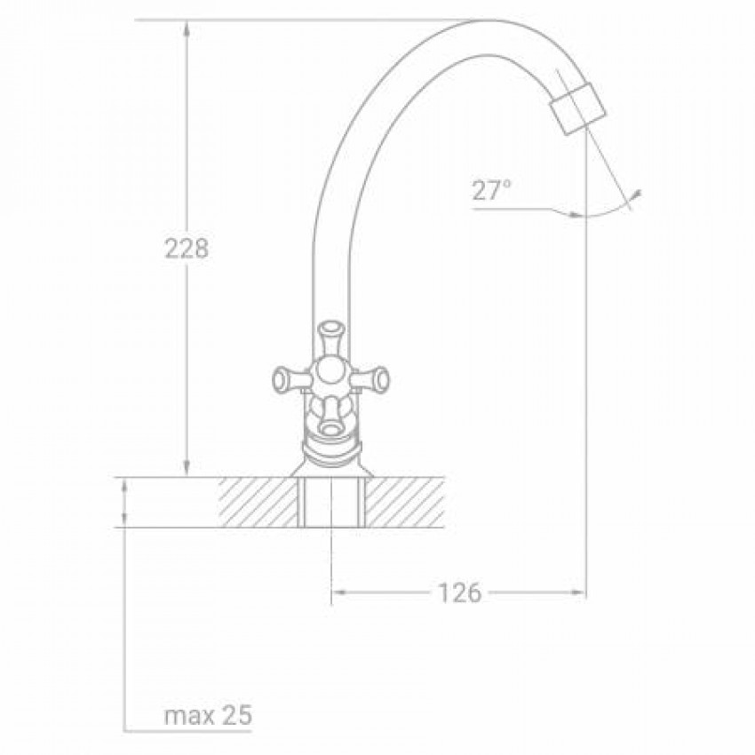 Характеристики Змішувач VN 1/2" для кухні економ на гайці TAU (VN-1B160C)