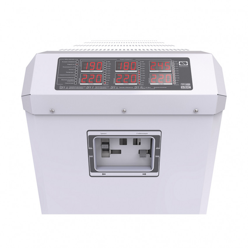 До особливостей даного стабілізатора можна віднести подвійний LED-індикатор на фазу, лінійна смуга завантаження, наявність механічного транзиту (байпас), підлогове виконання, наявність вхідних та вихідних фільтрів для захисту від високочастотних перешкод, безшумну роботу за рахунок використання тороїдальних трансформаторів та тиристорних ключів.