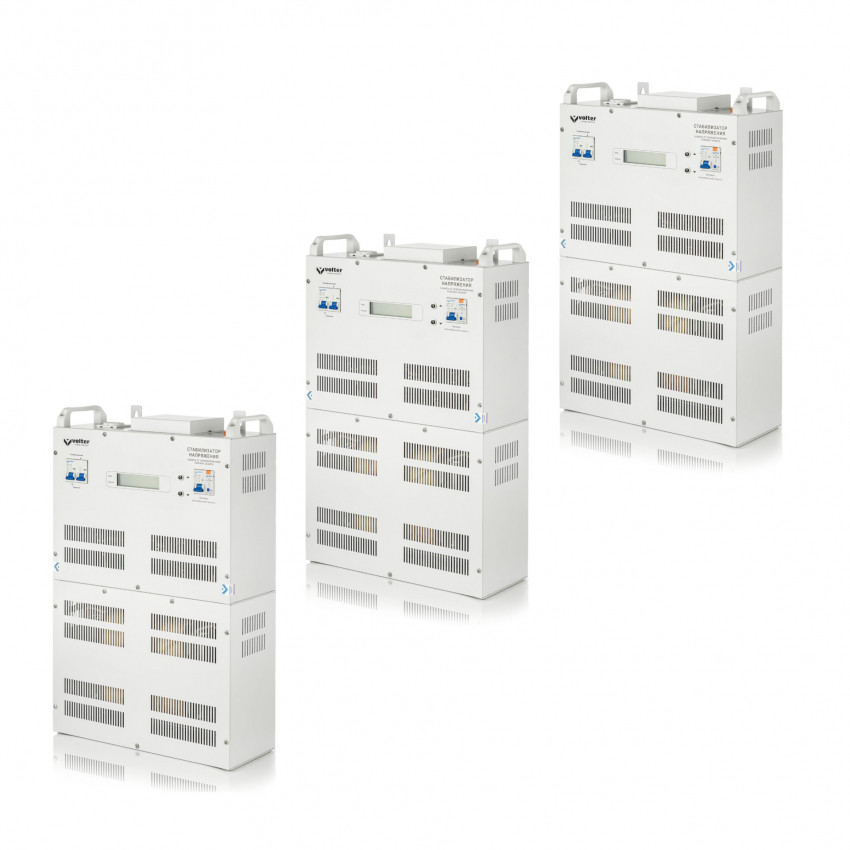 Volter 66 птс – трифазний стабілізатор напруги для квартири або будинку максимальною потужністю 66 кВт, відноситься до серії Volter ПТС- підвищеної точності з широким симетричним діапазоном вхідної напруги.