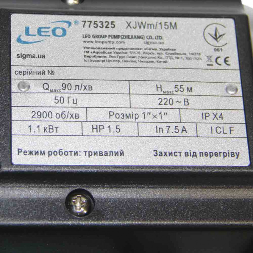 Відгуки Станція 1.1кВт Hmax 55м Qmax 80л/хв (самовсмоктувальний насос) 50л Україна LEO (775325/50)