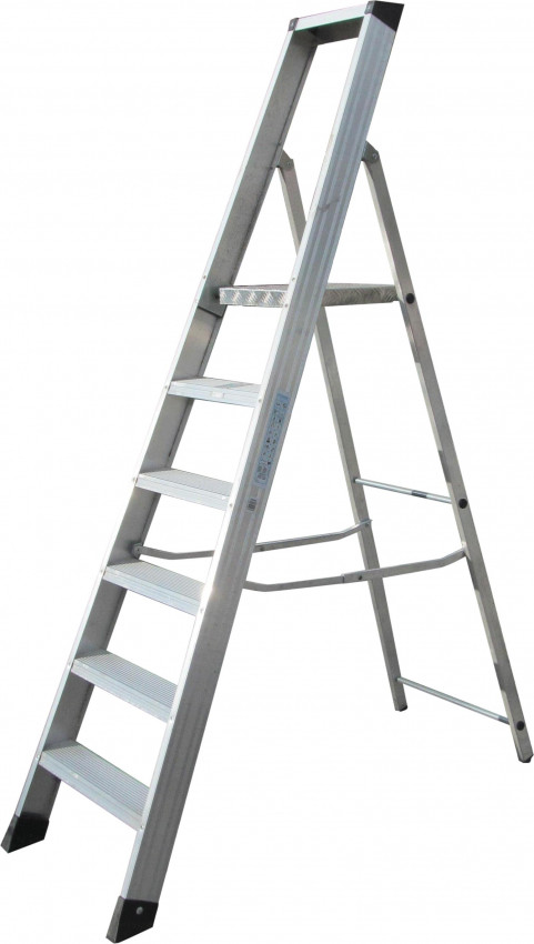 Алюмінієва одностороння стремянка SHRP –series призначена для професійних будівельних потреб. Діапазон висот – 3-12сходинок (робоча висота 2,6- 4,6м), легка та стабільна. Протиковзкі полімерні упори в нижній та верхній частині стремянки для збільшення стійкості. Рельєфні сходинки та площадка з протиковзкого трапового металу. Стабілізуючі діагоналі забезпечують стійкість конструкції до високих навантажень до 150 кг. Горизонтальні металеві розпірки для захисту від випадкового складання драбини та розхитування в горизонтальній площині.