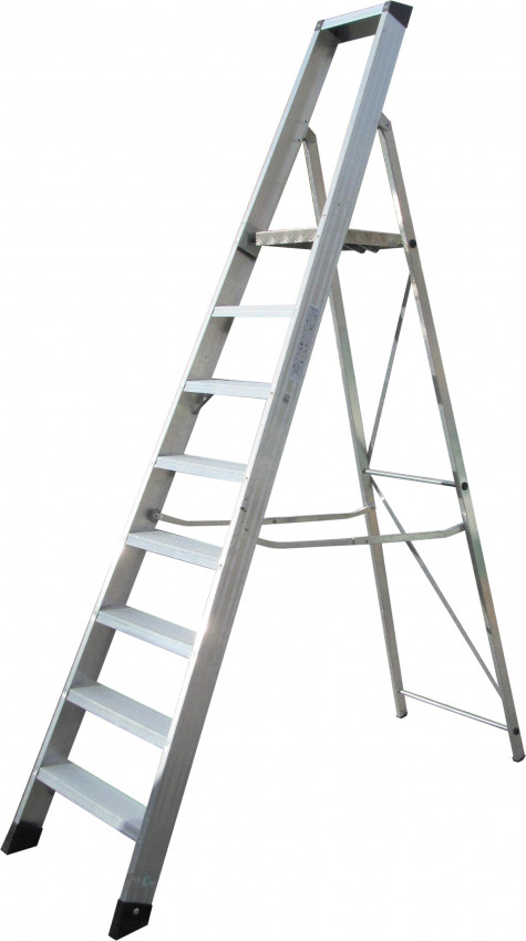 Алюмінієва одностороння стремянка SHRP –series призначена для професійних будівельних потреб. Діапазон висот – 3-12 сходинок (робоча висота 2,6- 4,6м), легка та стабільна. Протиковзкі полімерні упори в нижній та верхній частині стремянки для збільшення стійкості. Рельєфні сходинки та площадка з протиковзкого трапового металу. Стабілізуючі діагоналі забезпечують стійкість конструкції до високих навантажень до 150 кг. Горизонтальні металеві розпірки для захисту від випадкового складання драбини та розхитування в горизонтальній площині.
