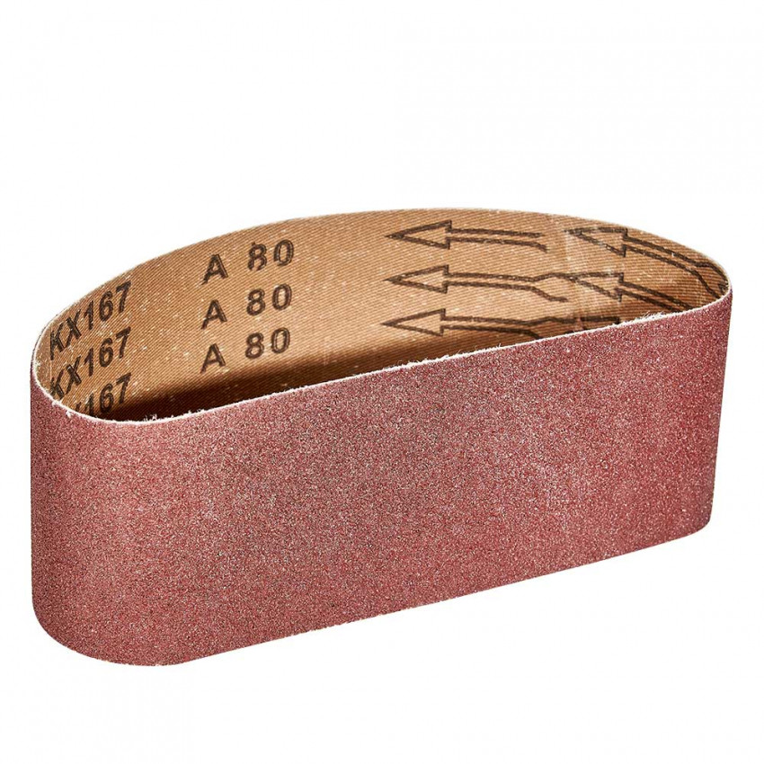 Абразивний матеріал стрічки — електрокорунд, зернистість — Р80. Міцна та еластична тканинна основа не рветься під час експлуатації, що забезпечує тривалу роботу навіть із міцним матеріалом. Посилений тип сполучного шва підвищує міцність і не викликає биття.