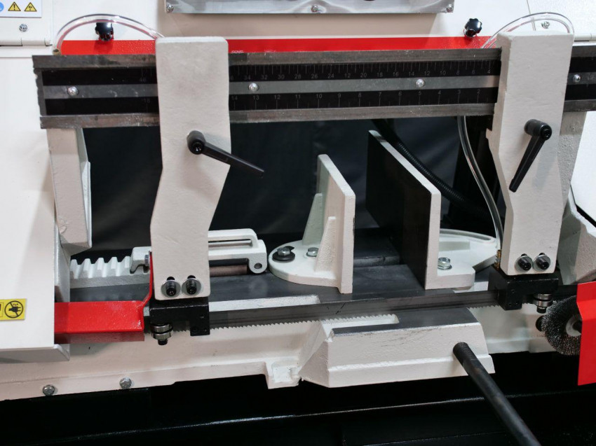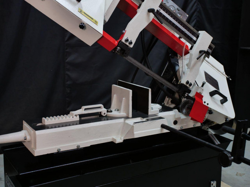 Опускання ріжучої голови здійснюється під дією сили тяжіння та обмежується гідроциліндром, що робить її рух плавним і контрольованим. Також ріжучу голову можна зафіксувати на будь-якій висоті, щоб початок опускання здійснювався безпосередньо над заготовкою. Кут різання регулюється за допомогою поворотних лещат. Завдяки ефективній системі охолодження ЗОР цей верстат стрічковий по металу може працювати на високих швидкостях без ризику перегріву, що дозволяє досягти високої продуктивності.