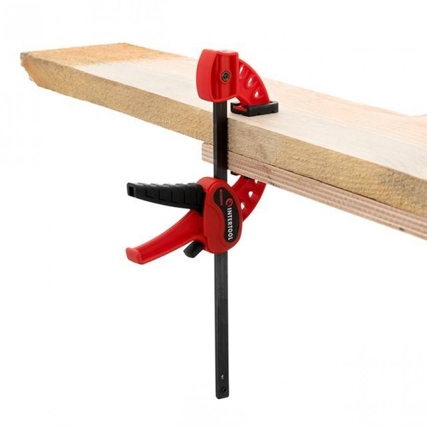 Струбцина автоматична INTERTOOL STORM - універсальний пристрій для затискання та фіксації деталей. Знадобиться у побуті для ремонту та у професійній діяльності. Гарантує повну нерухомість предметів для досягнення якісного результату склеювання, обробки та під час інших робіт.