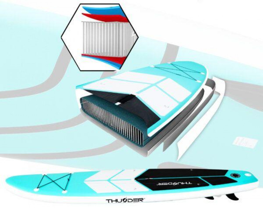 Набір аксесуарів: Дошка з двостороннім насосом, рюкзаком, стріпом безпеки, ремонтним комплектом.