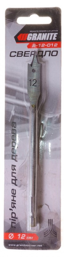 Про товар Свердло для дерева GRANITE пір'яне 12 мм 6-гранний хвостовик 1/4" 2-12-012