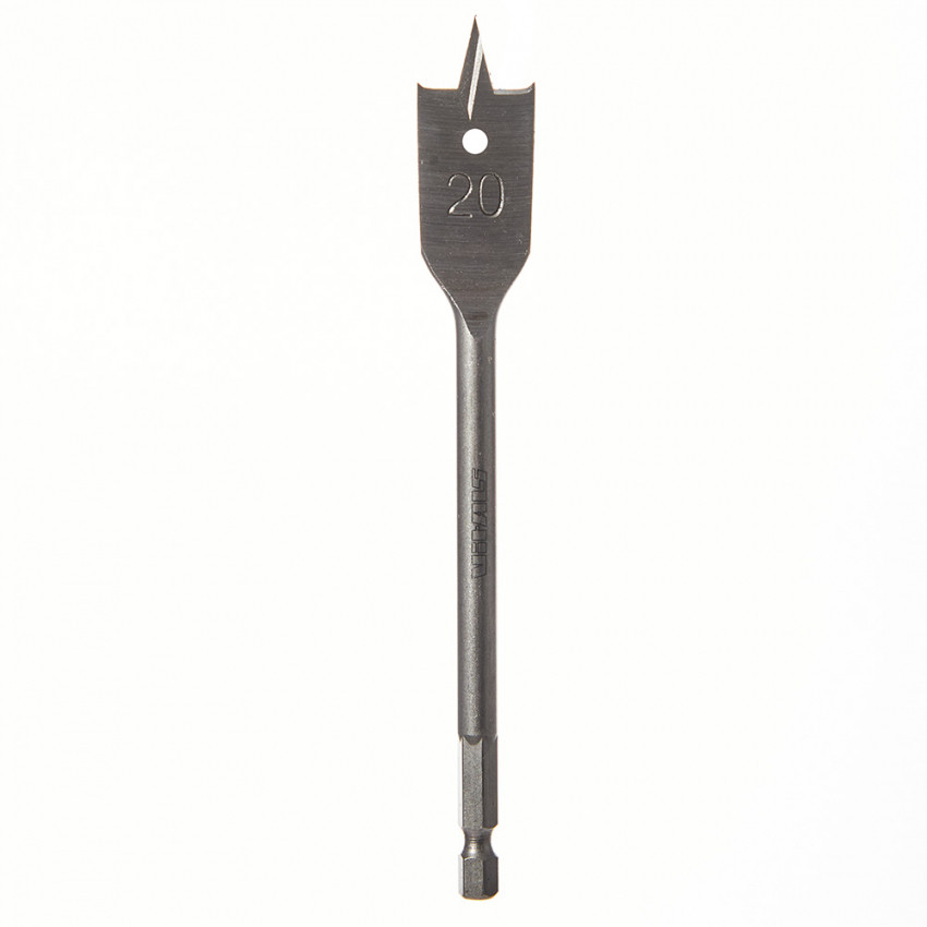 Свердло по дереву пір’яне 20 мм Vitals Master – це високоякісне свердло для свердління отворів у різних дерев'яних матеріалах. Свердло виготовлене зі сталі 45, яка має високу міцність і зносостійкість. Твердість свердла становить 45-49 HRC, що гарантує тривалий термін служби та надійну роботу. Довжина свердла становить 150 мм, що дозволяє свердлити отвори достатньої глибини. Свердло має шестигранний хвостовик (HEX), який запобігає провертанню в свердлильному патроні та забезпечує зручне захоплення. Також є цифрове маркування, яке вказує діаметр свердла в міліметрах, вимірюється по ширині лопатки. У свердла є центруючий робочий наконечник, який служить для центрування свердла та його початкового заглиблення у матеріал. Дві пари ріжучих кромок торцевої та бічної робочих частин служать для основного свердління отвору. Свердло по дереву пір’яне підходить для роботи з електричними та акумуляторними дрилями. Свердло по дереву пір’яне – це ідеальний інструмент для деревообробки та меблевого виробництва.