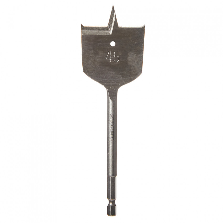 Свердло по дереву пір’яне 22 мм Vitals Master – це високоякісне свердло для свердління отворів у різних дерев'яних матеріалах. Свердло виготовлене зі сталі 45, яка має високу міцність і зносостійкість. Твердість свердла становить 45-49 HRC, що гарантує тривалий термін служби та надійну роботу. Довжина свердла становить 150 мм, що дозволяє свердлити отвори достатньої глибини. Свердло має шестигранний хвостовик (HEX), який запобігає провертанню в свердлильному патроні та забезпечує зручне захоплення. Також є цифрове маркування, яке вказує діаметр свердла в міліметрах, вимірюється по ширині лопатки. У свердла є центруючий робочий наконечник, який служить для центрування свердла та його початкового заглиблення у матеріал. Дві пари ріжучих кромок торцевої та бічної робочих частин служать для основного свердління отвору. Свердло по дереву пір’яне підходить для роботи з електричними та акумуляторними дрилями. Свердло по дереву пір’яне – це ідеальний інструмент для деревообробки та меблевого виробництва.
