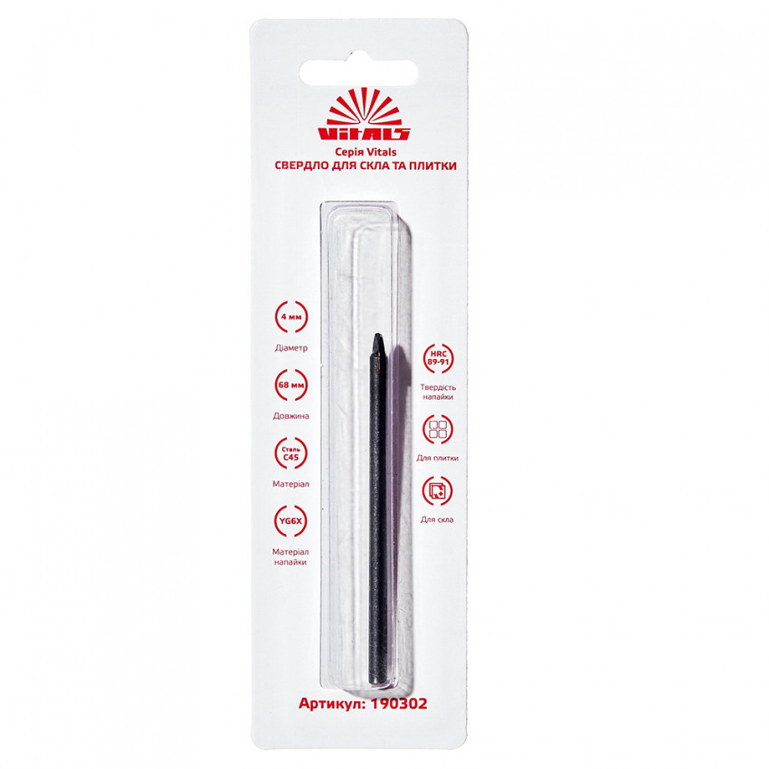 Опис свердла пікоподібного по склу та плитці 4 мм Vitals
